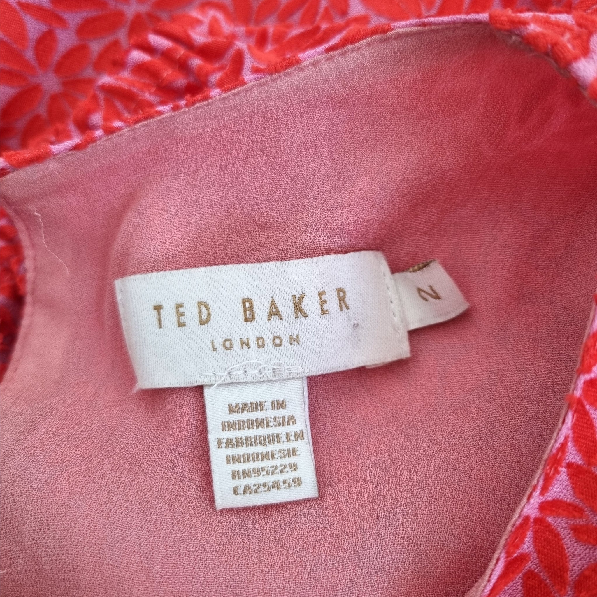 Ted Baker Devore Top Ruffle Size 2 UK 10 Coral Red Puff Sleeves Ties Devonna