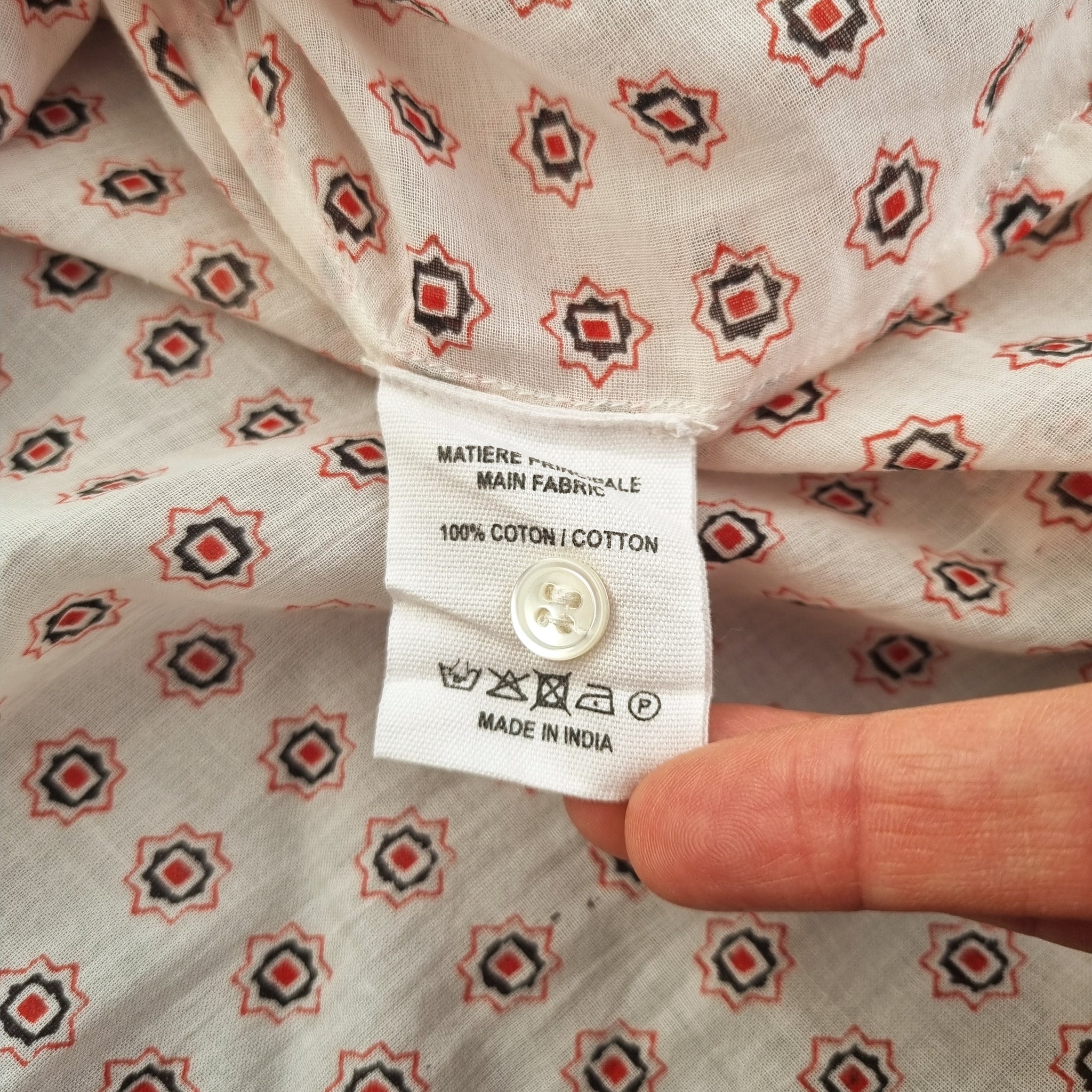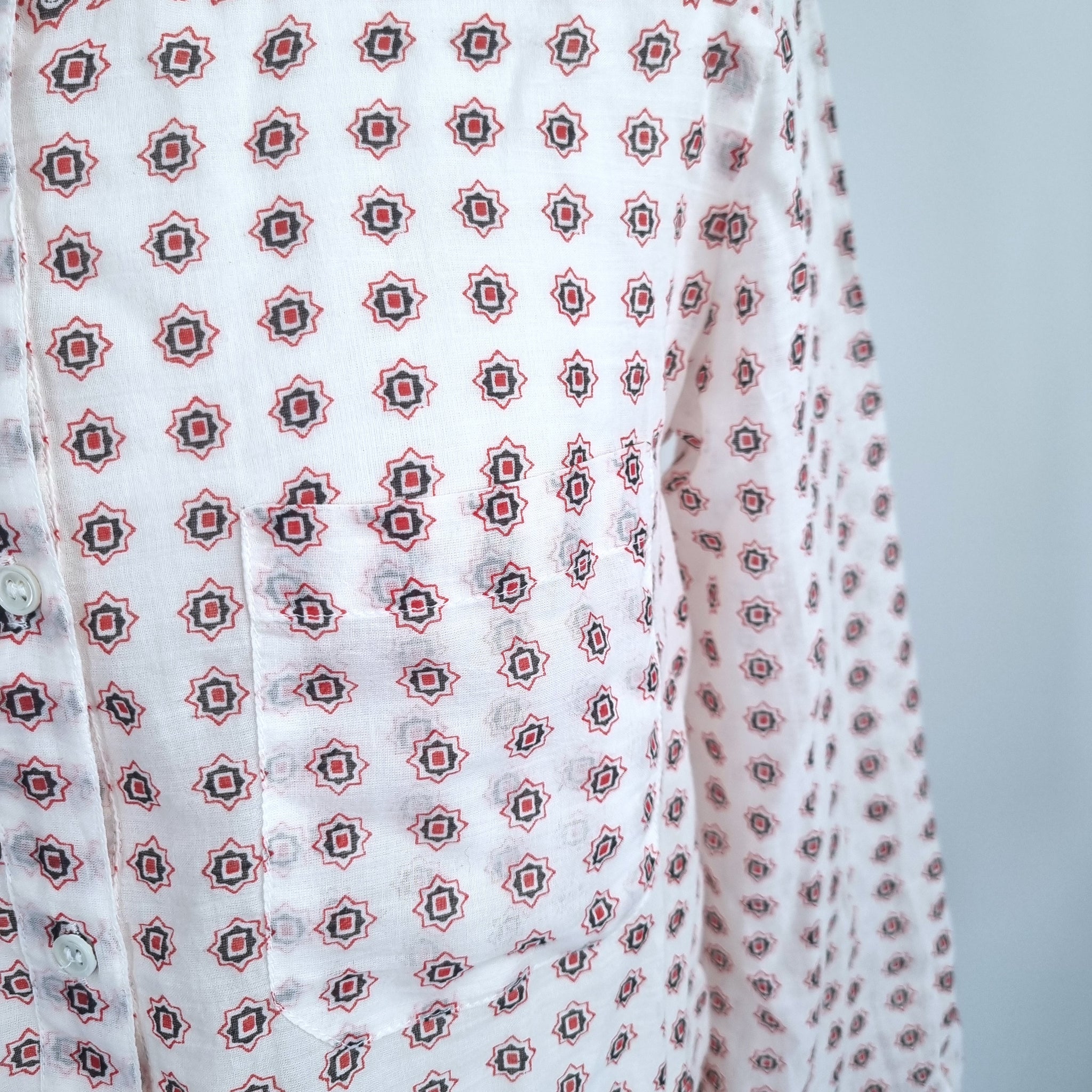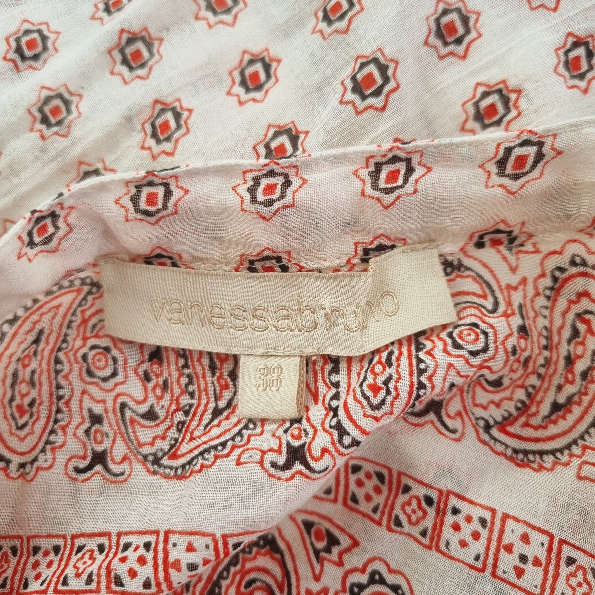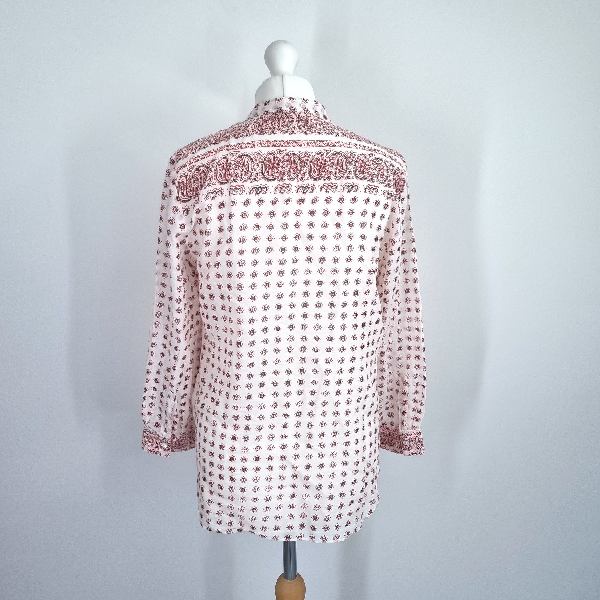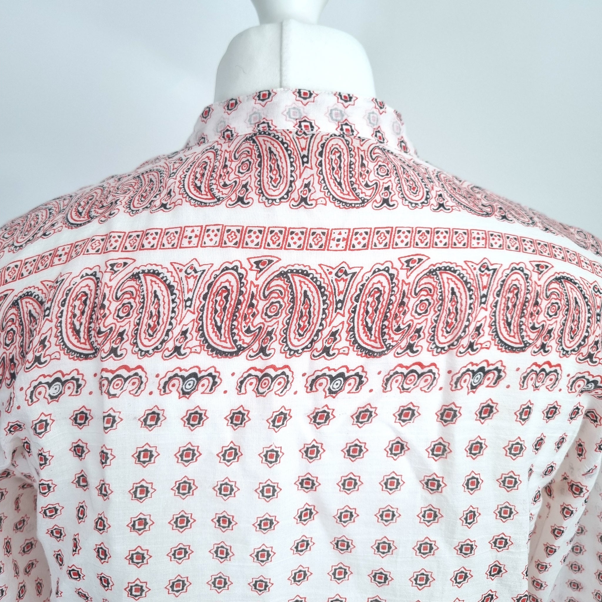 Vanessa Bruno Tunic Blouse - Paisley Print - 100% Cotton - Cream & Red - Mock Neck - 1/2 Buttons - Long Sleeves