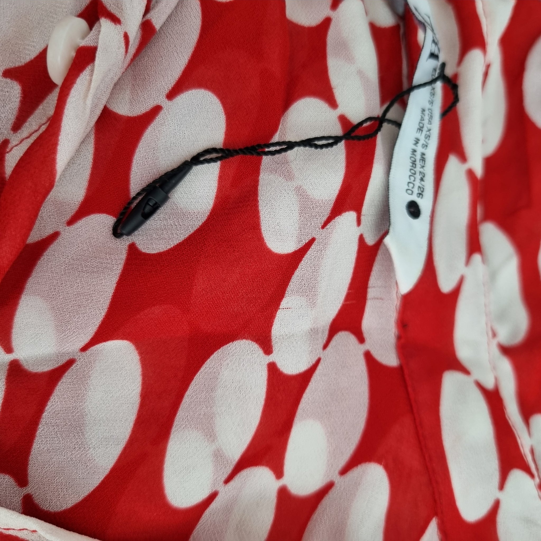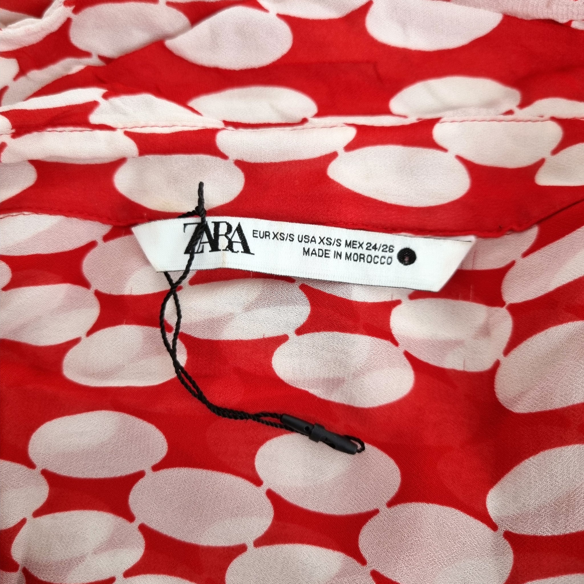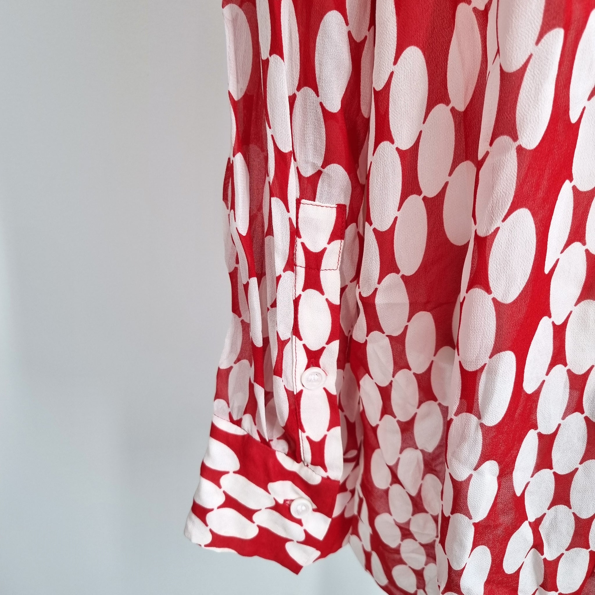 Zara Oversized Chiffon Shirt - Red & White - Large Retro Polka Dot Print - Tunic Length - Button Down - Long Sleeves - 100% Viscose