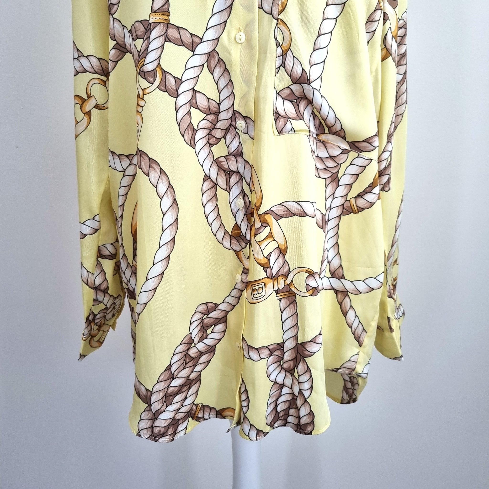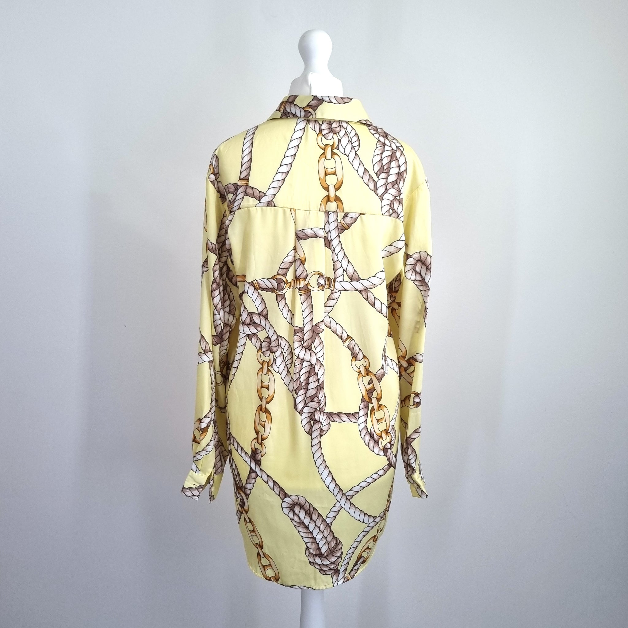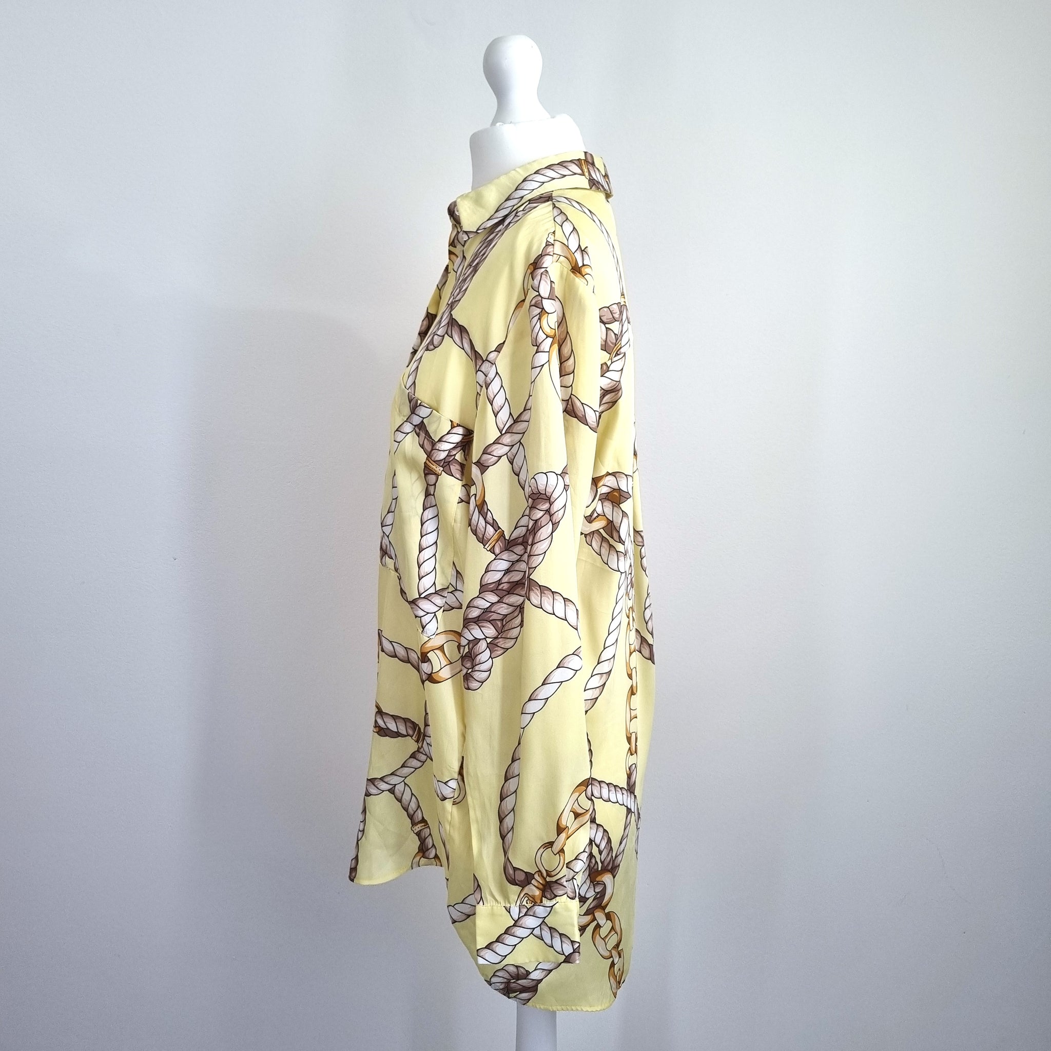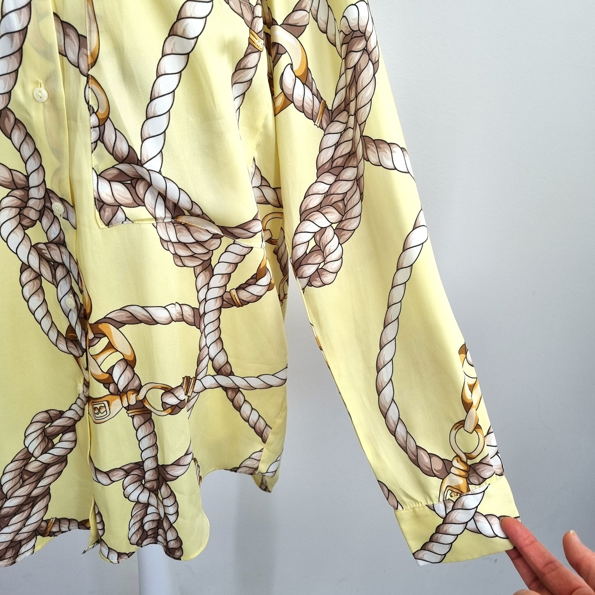 Zara Shirt - Rope & Chain Print - Light Yellow - Longline - Satiny Feel - Long Sleeves - Button Down - Chest Pocket - Dipped Hem