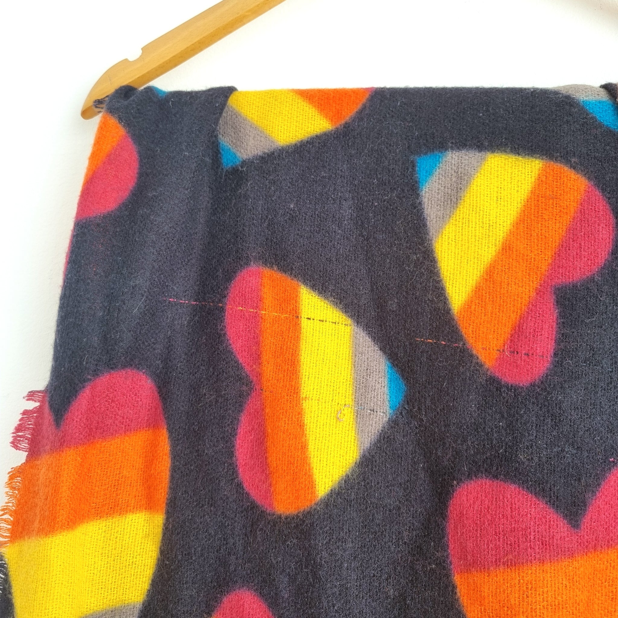 Accessorize Rainbow Heart Scarf / Shawl Wrap - Navy - Multicolour Hearts - Oversized - Fringed Hem