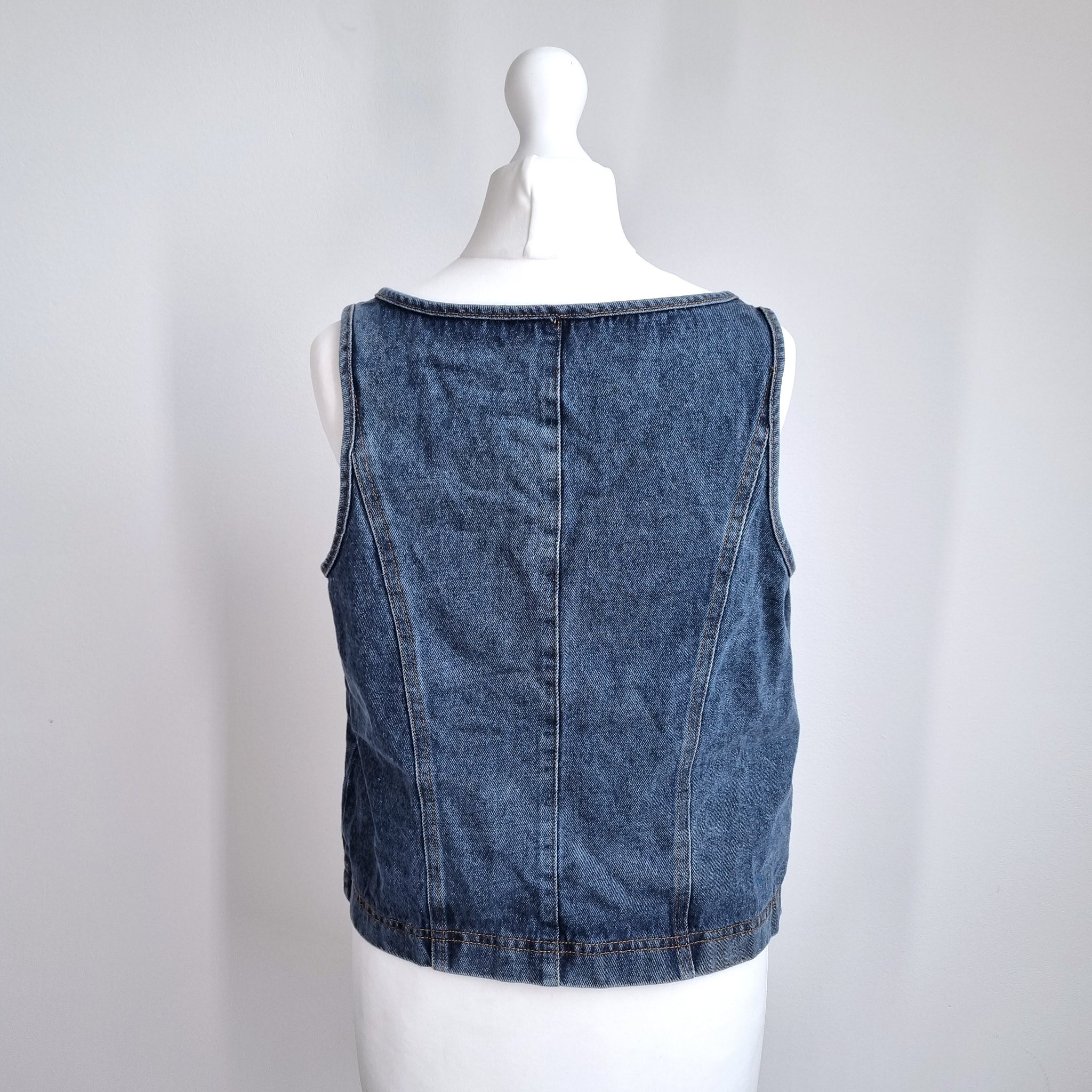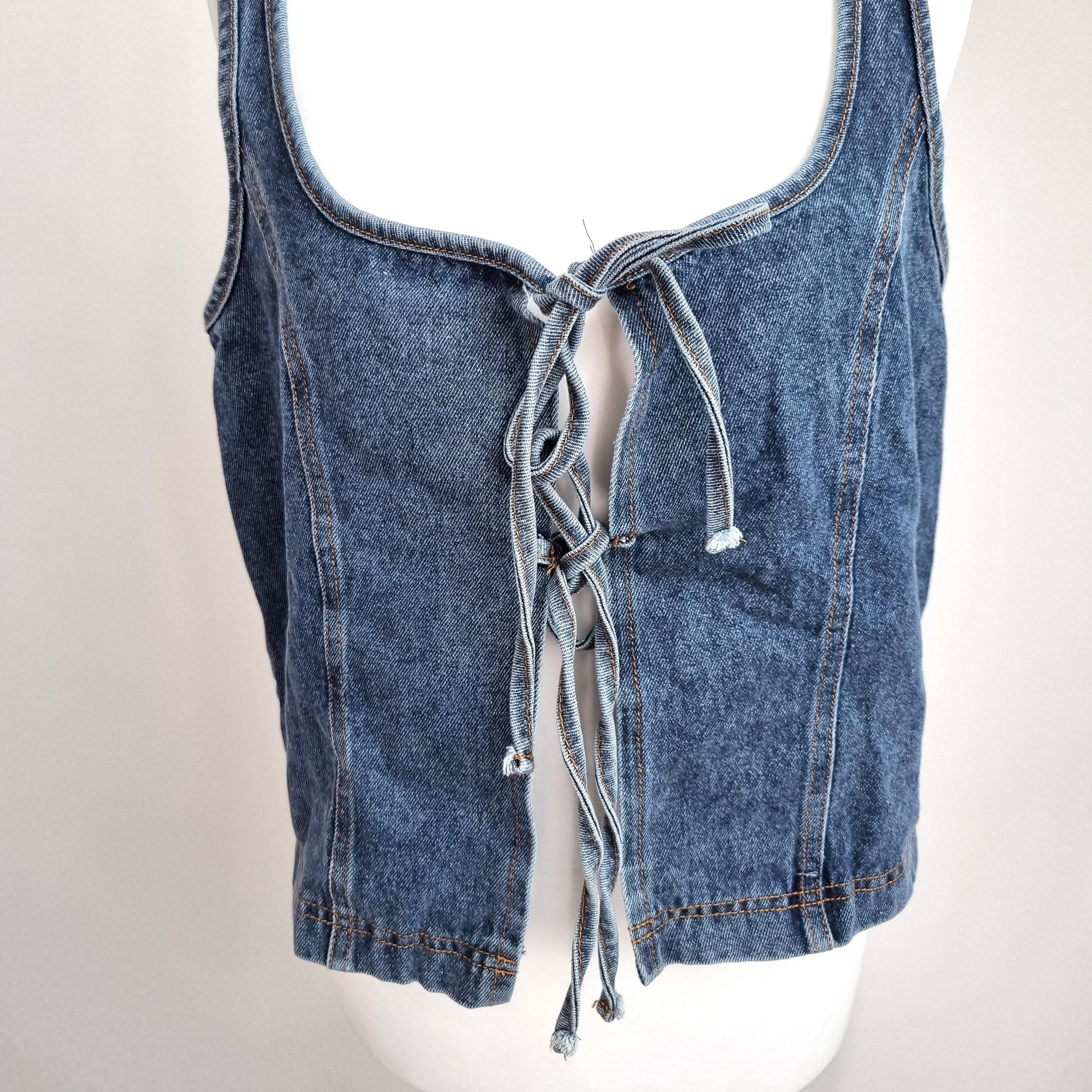 Denim Lace Up Vest Top - Corset Style - Blue - Sleeveless - 2 Tie Fastening - Cotton Blend