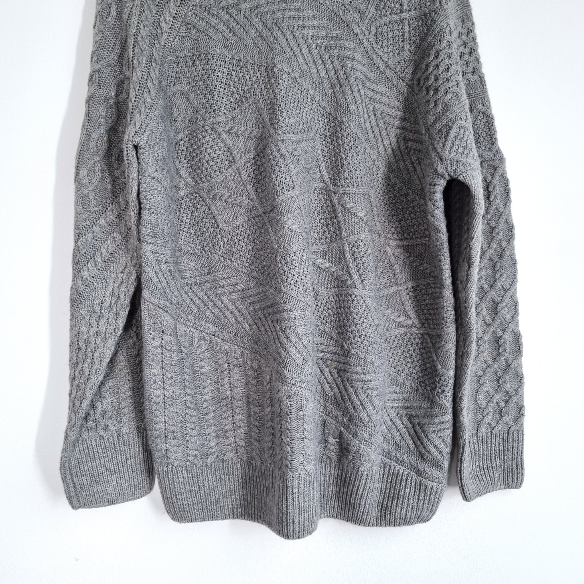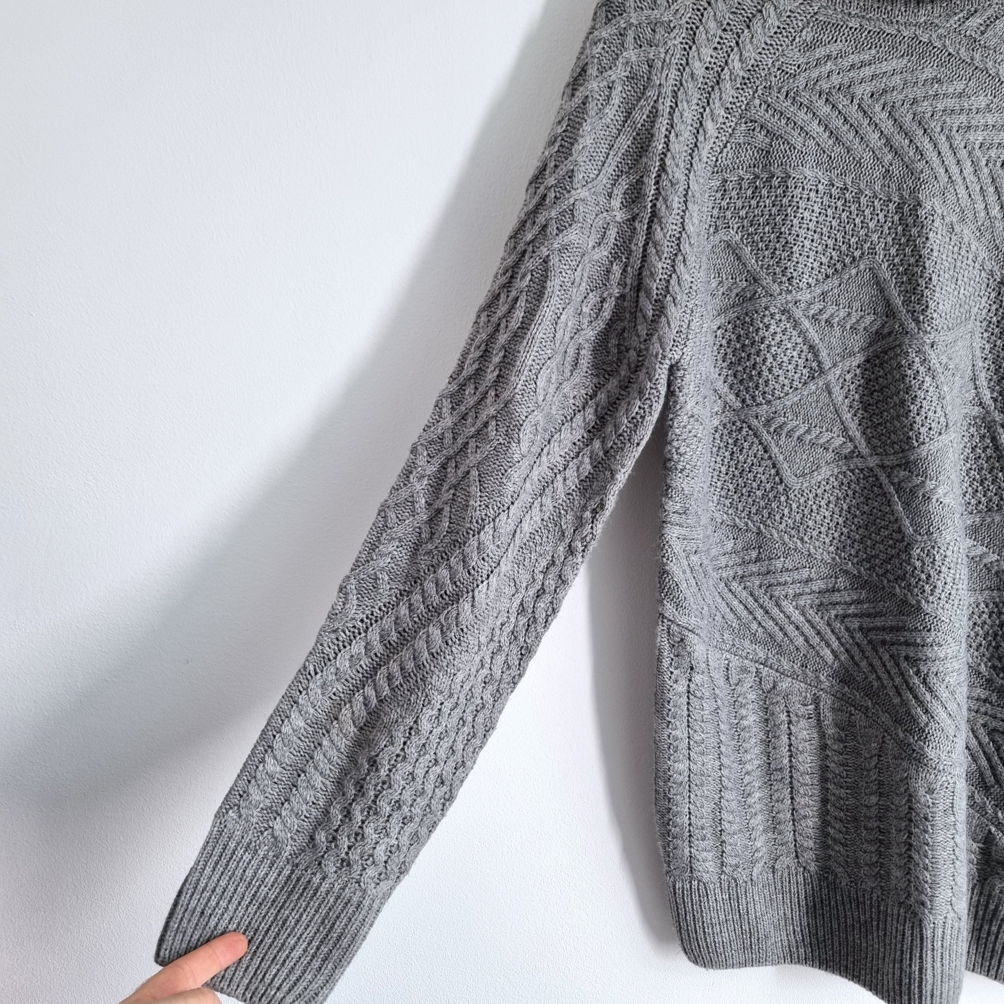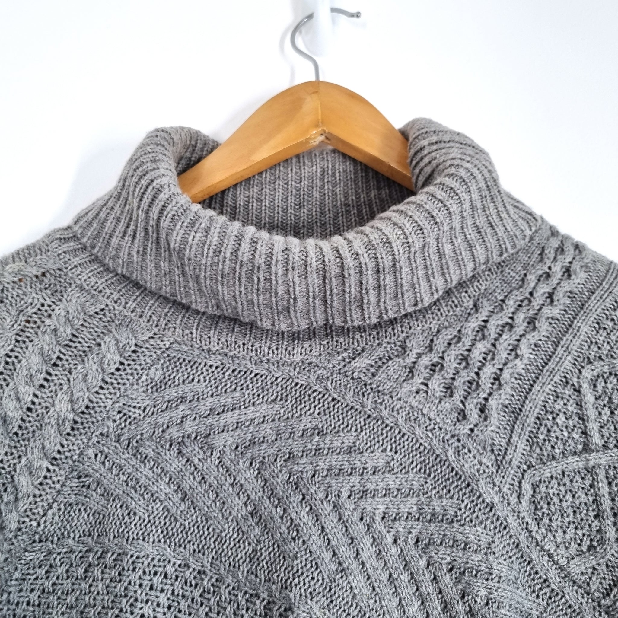 Joe Browns Men's Jumper - Grey - Asymmetric Cable Knit - Chunky - Roll Neck - Acrylic (85%) & Wool (15%) Blend