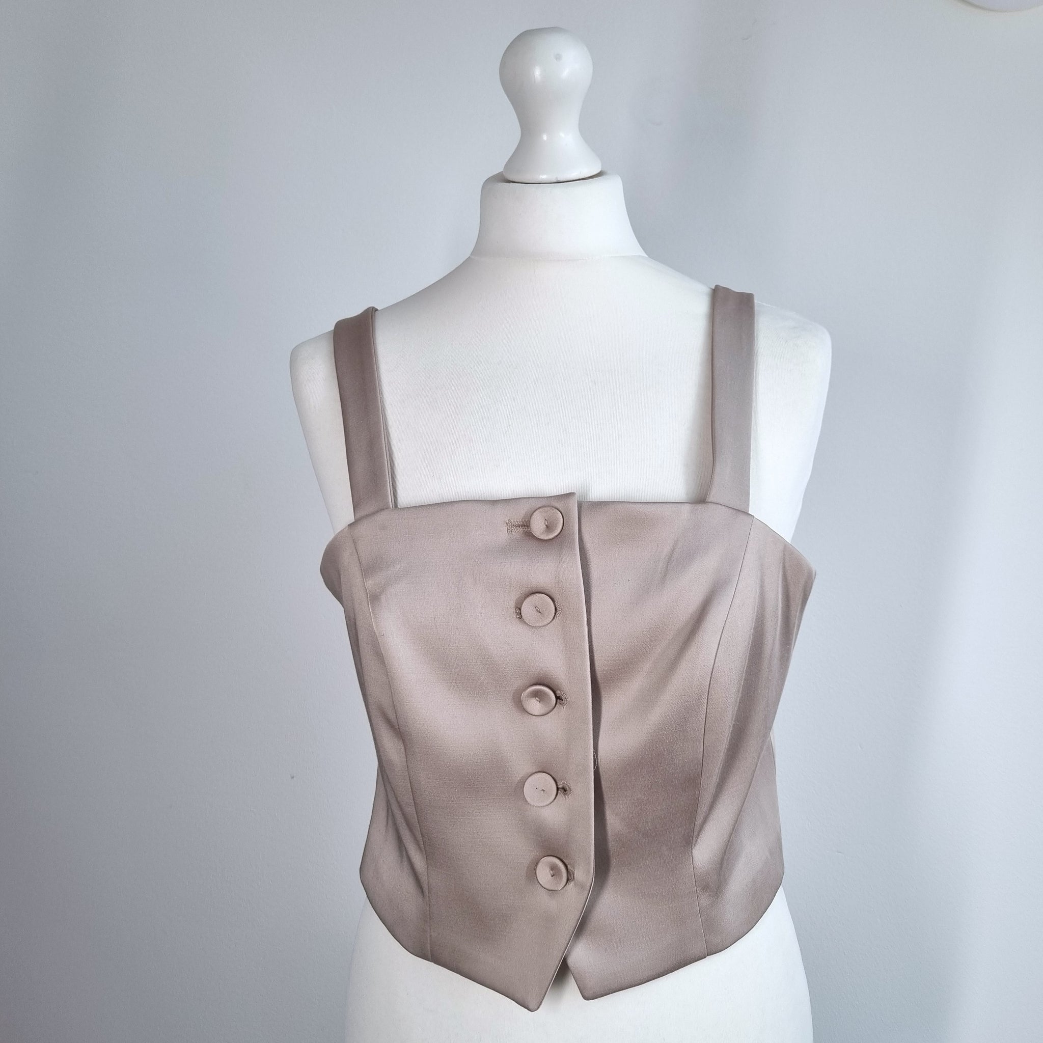 Marks & Spencer Satin Crop Top Tailored Size 12 Beige Button Down Party Chic
