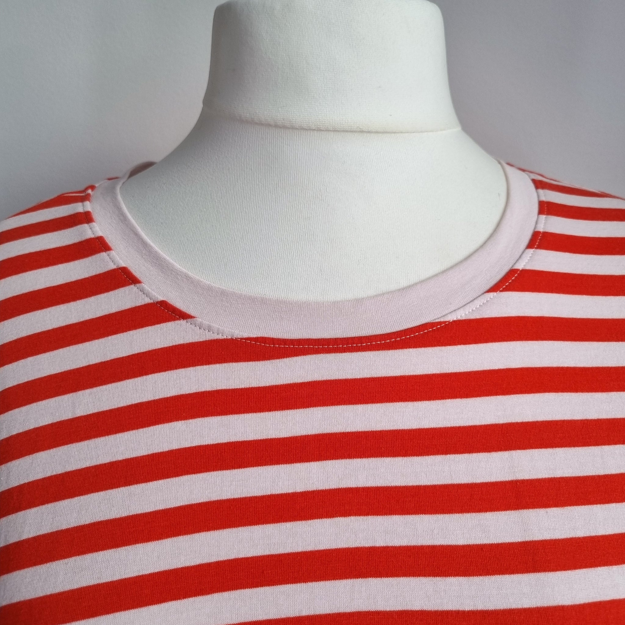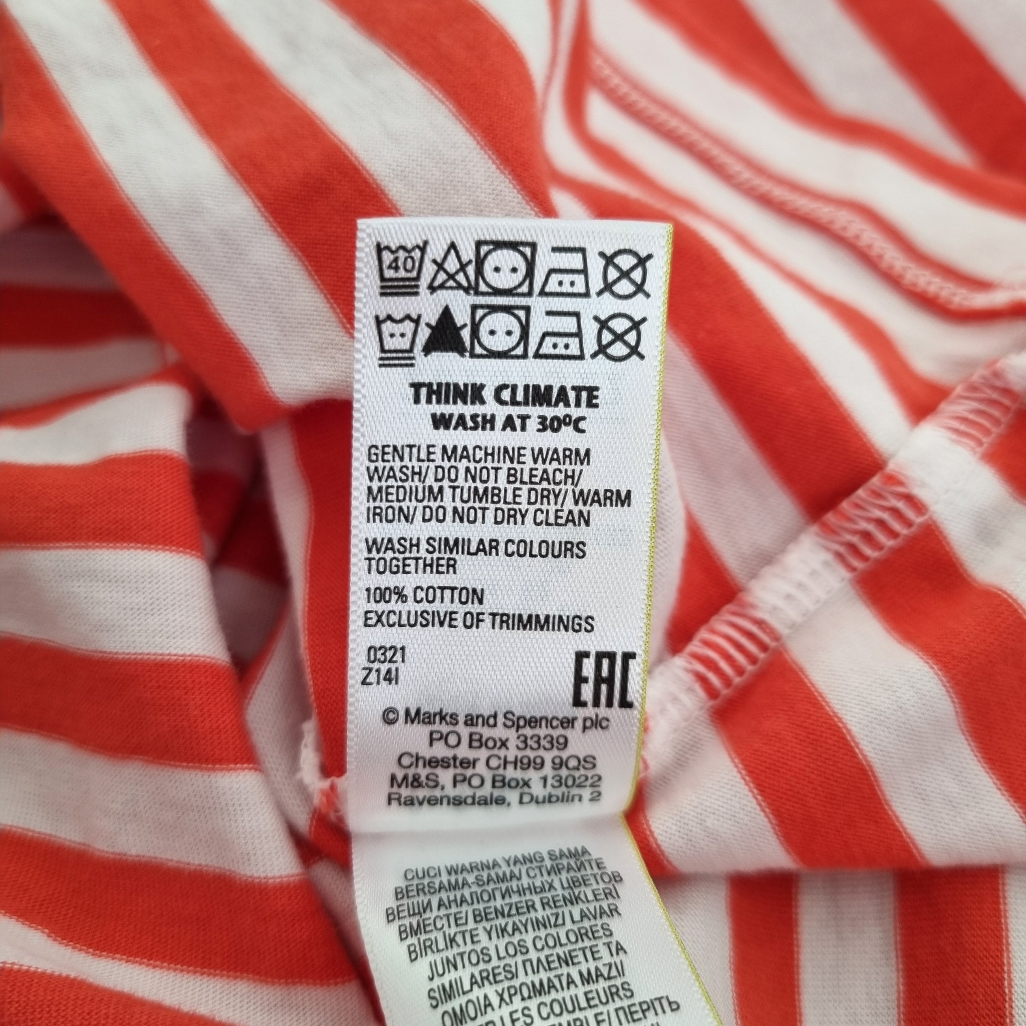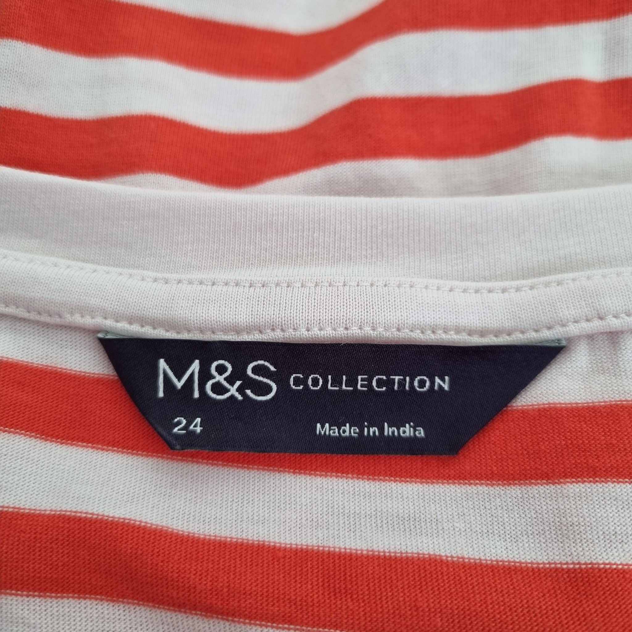 Marks & Spencer Striped T-shirt UK 24 Pink Breton 100% Cotton Short Sleeve Top