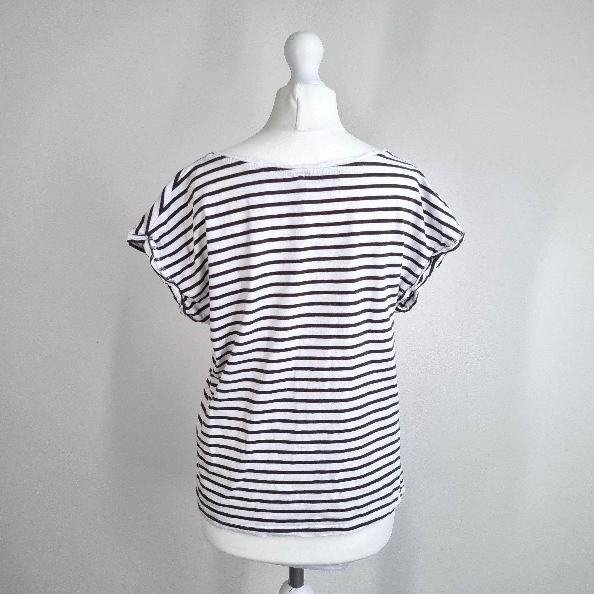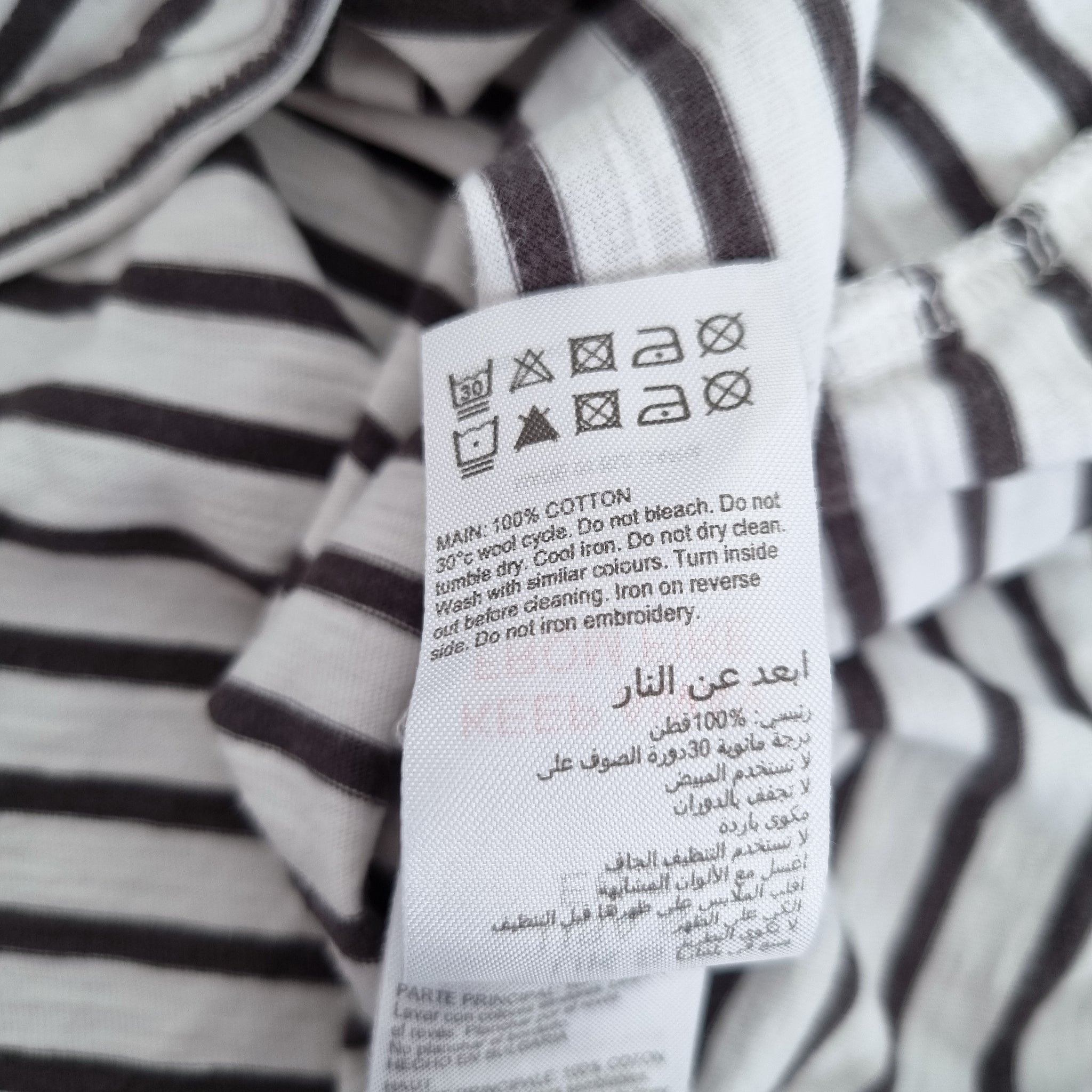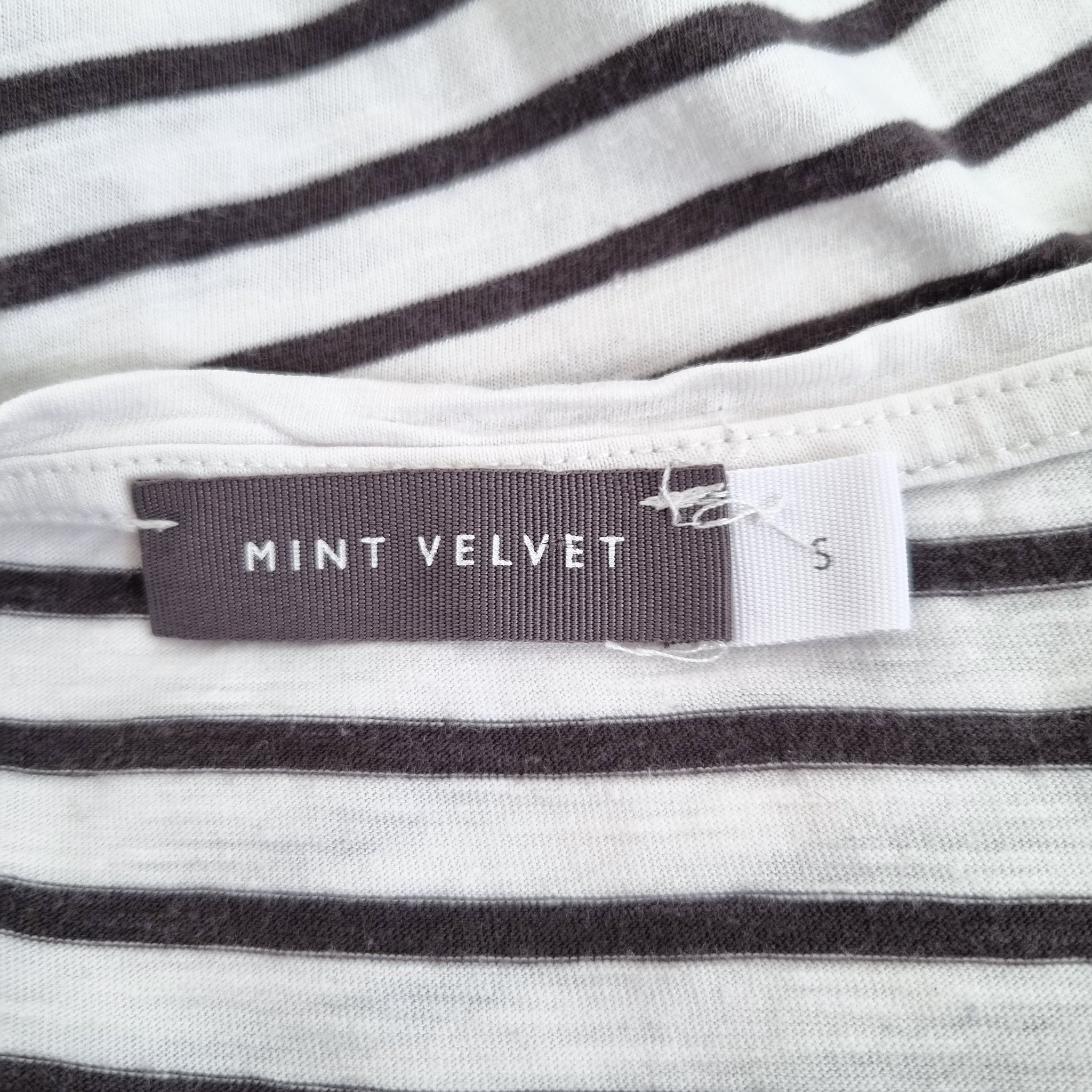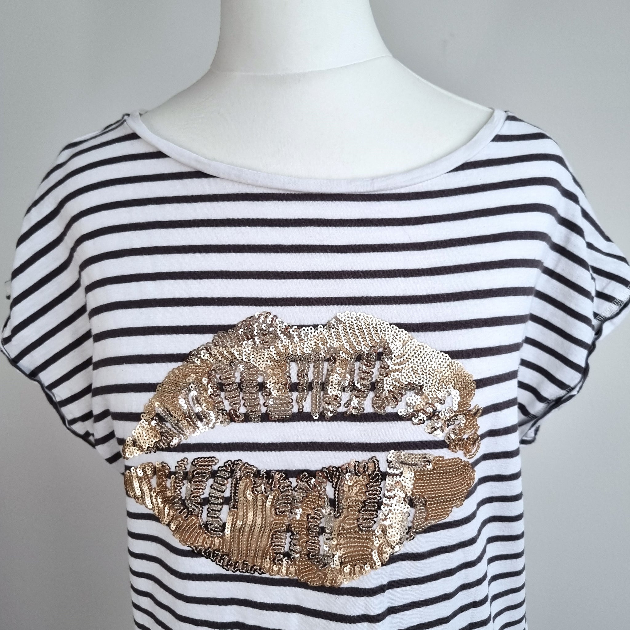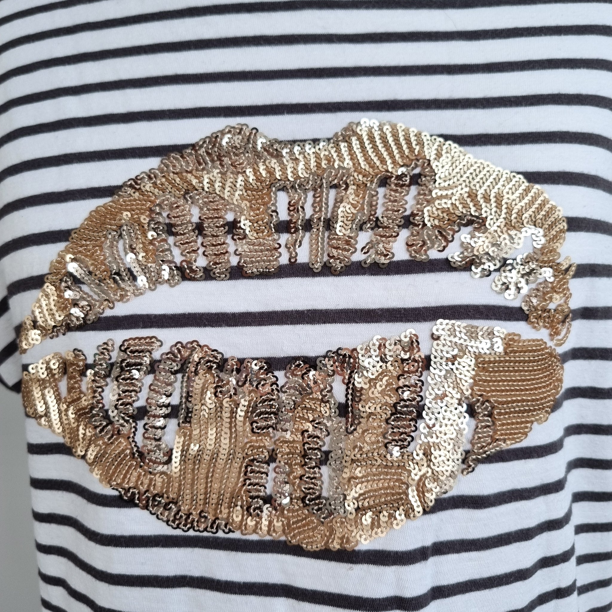 Mint Velvet Striped T-shirt Top - Gold Sequin Lips -White & Grey - 100% Cotton - Short Sleeves