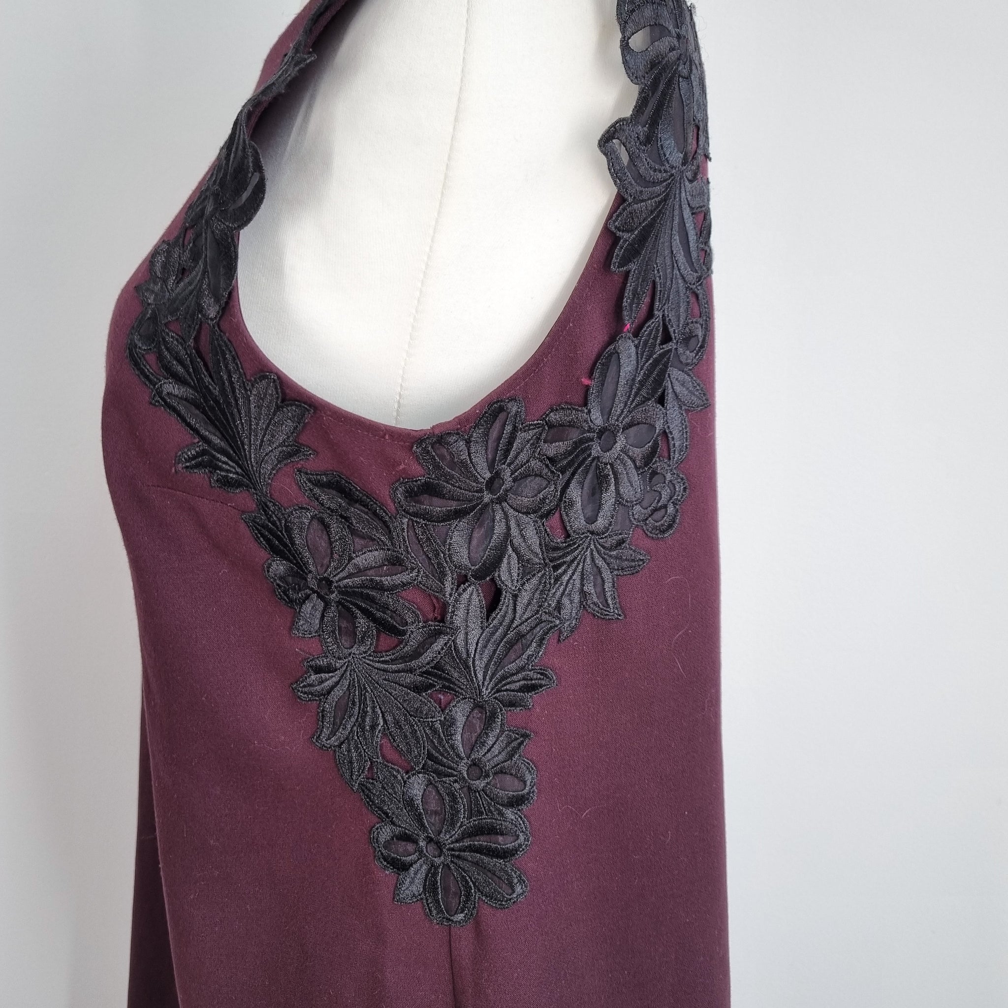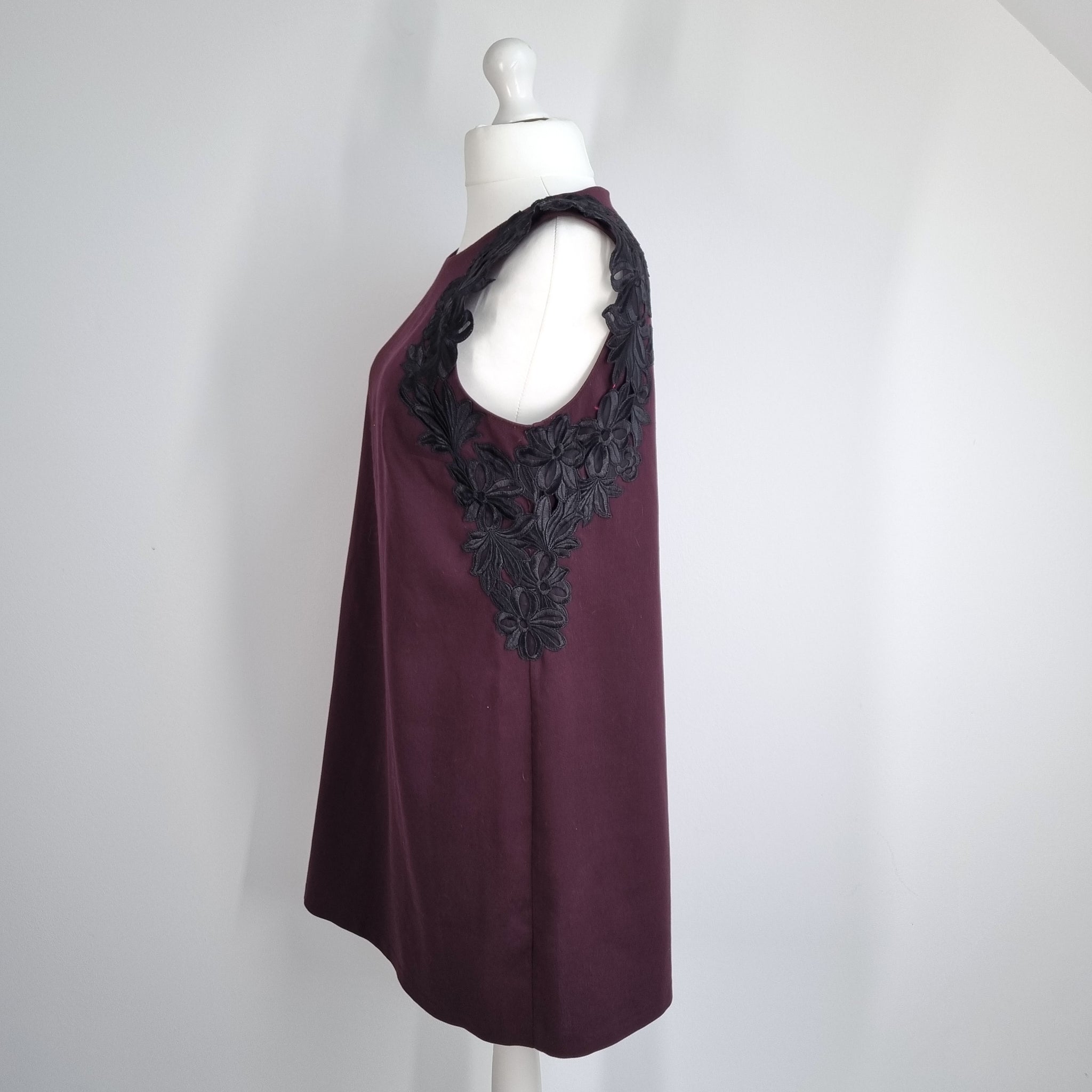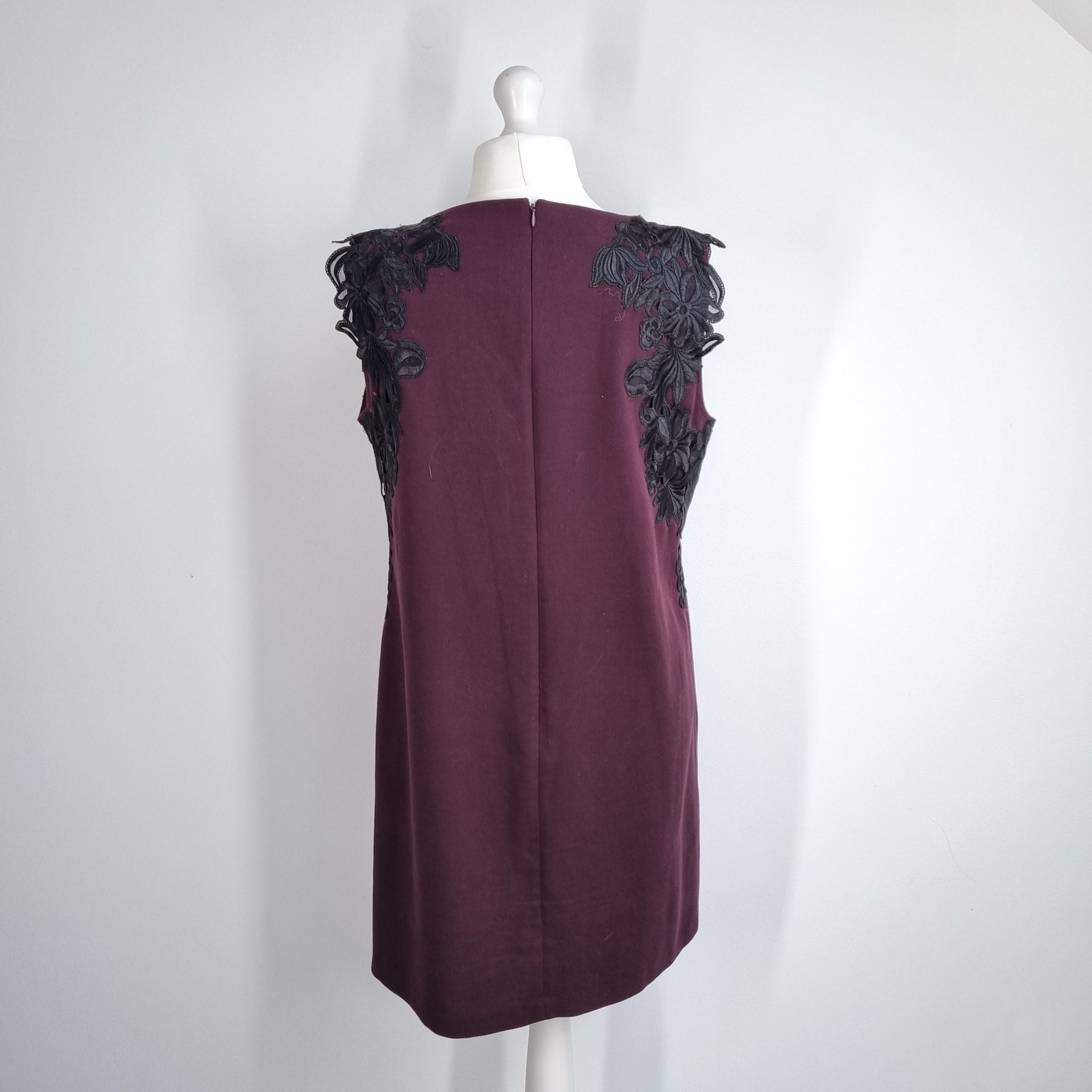 Monsoon Shift Dress - Burgundy - Floral Lace Shoulder Aplique - Sleeveless - Knee Length - Back Zip Fastening