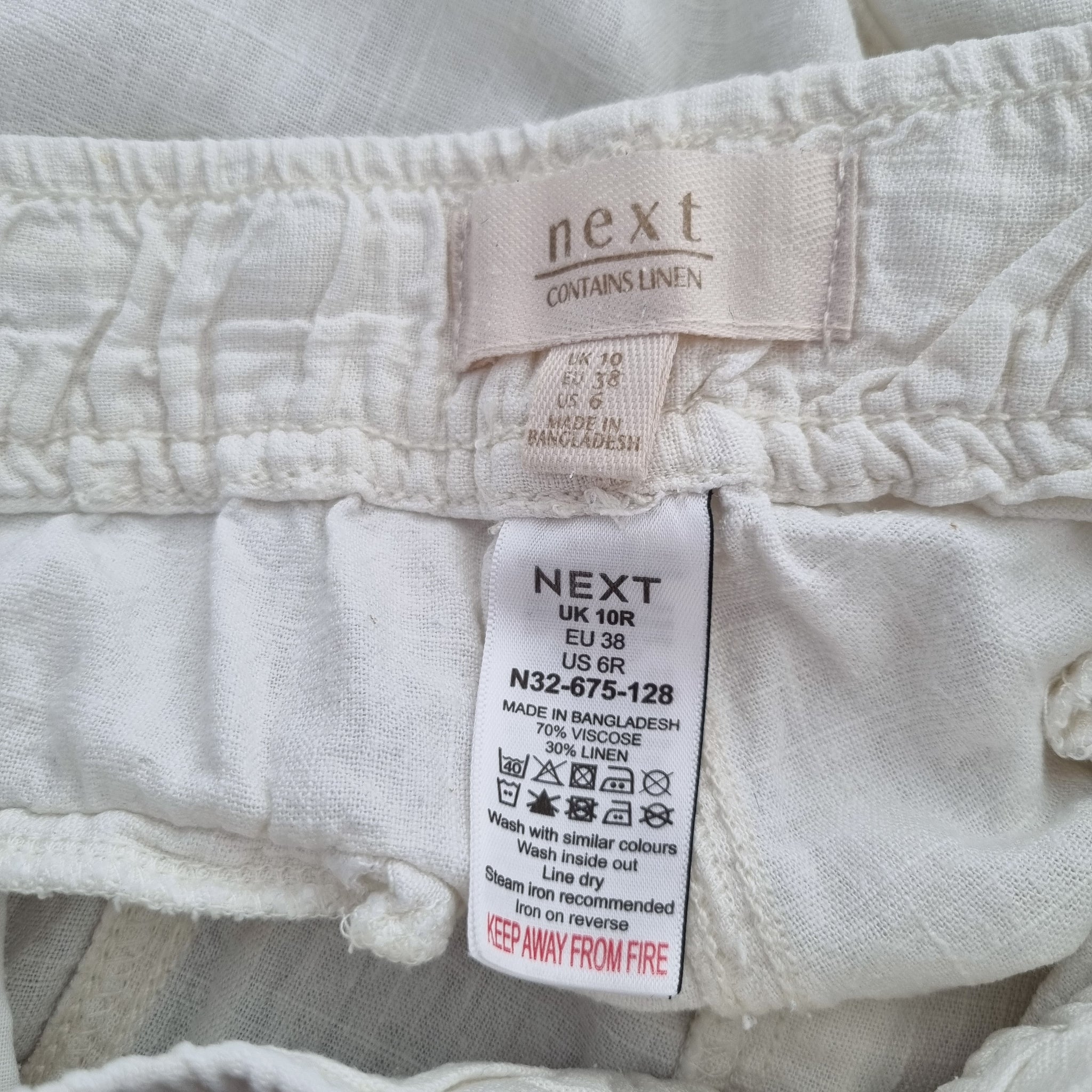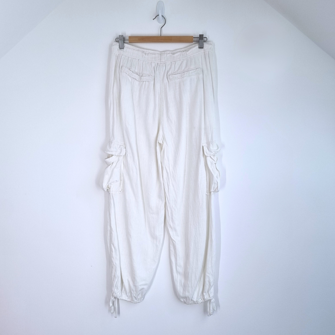 Next Cargo Harem Trousers UK 10 Cream Relaxed Fit Linen Blend Pockets Cuffed
