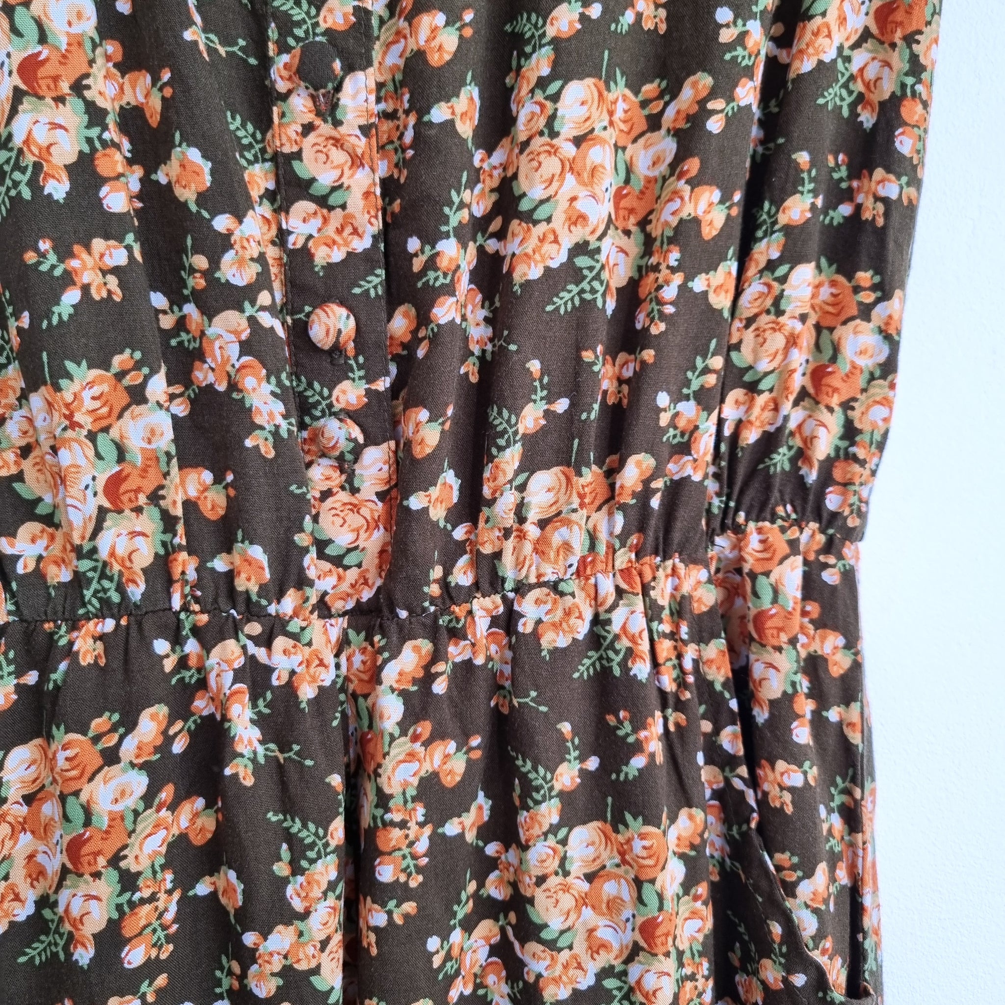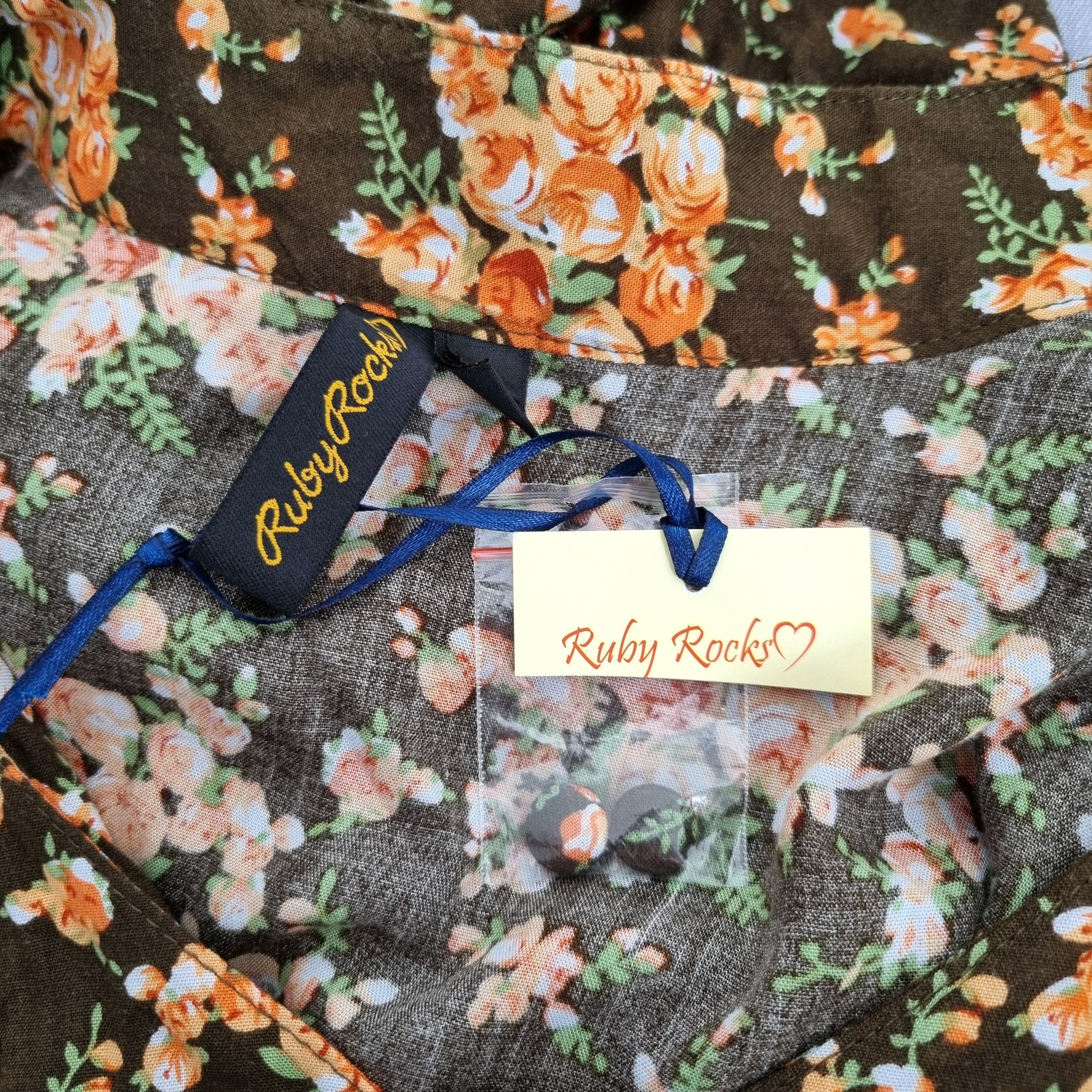 Ruby Rocks Jumpsuit - Brown - Floral Print - Sleeveless - Tapered - Button Down - Elasticated Waist - Pockets - 100% Viscose