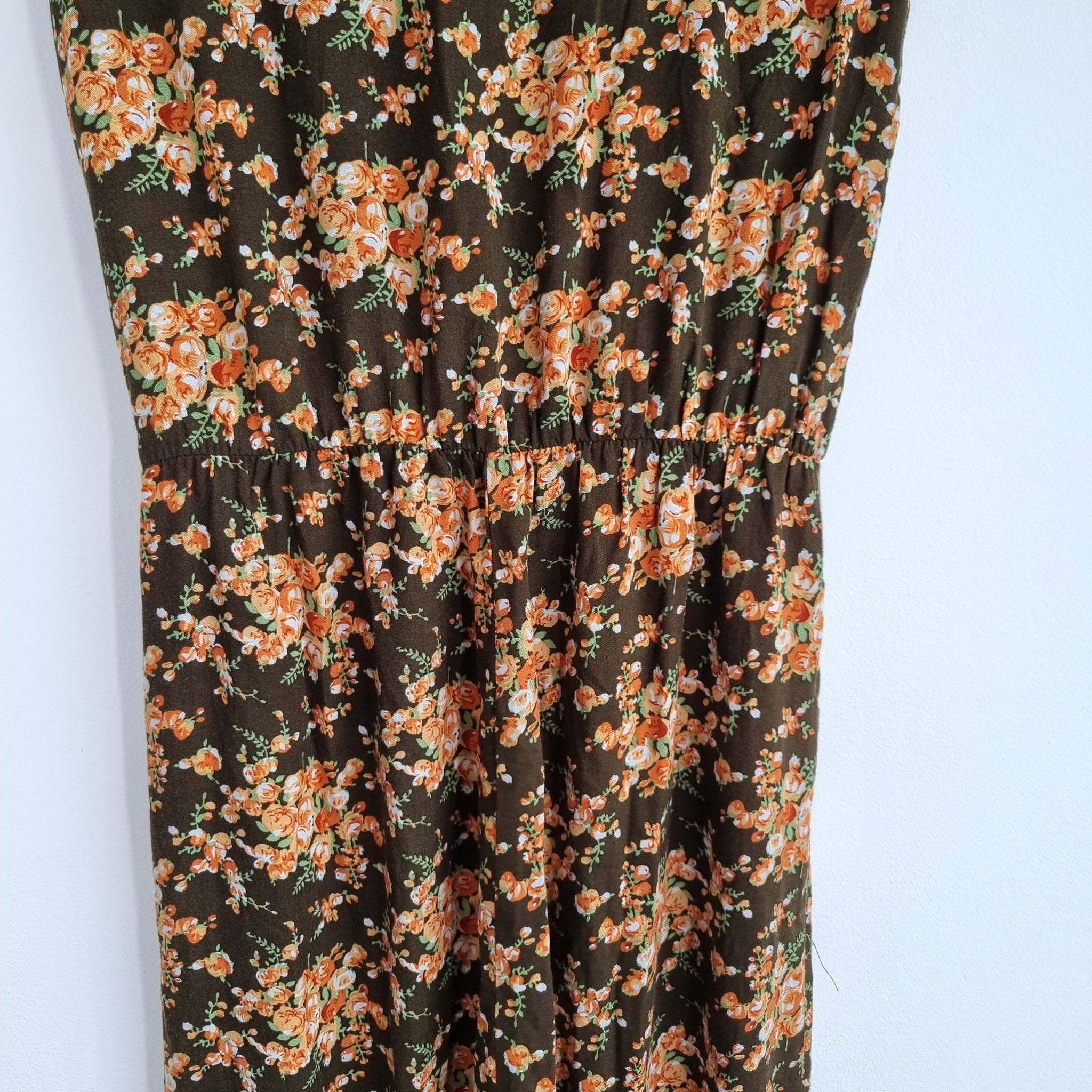 NWT Ruby Rocks Jumpsuit Brown Floral Print 8 Autumn Sleeveless Tapered Buttons