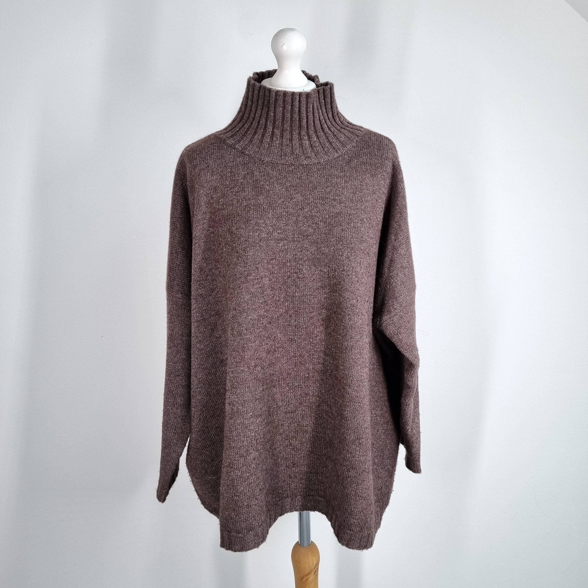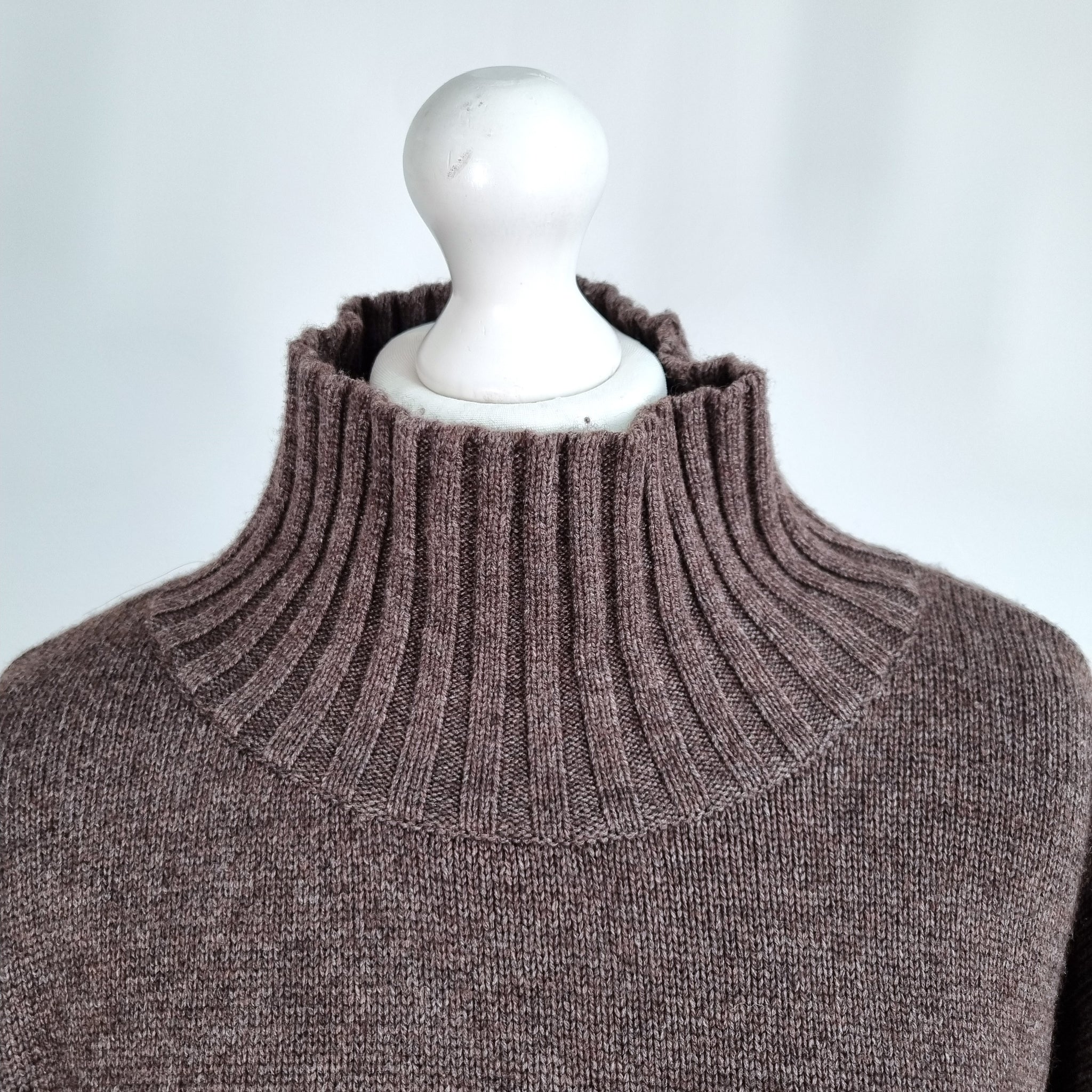 Ochre Jumper - Lambswool (70%) & Cashmere (30%) Blend - Brown - Roll Neck - Knit - Made in Nepal - Oversized