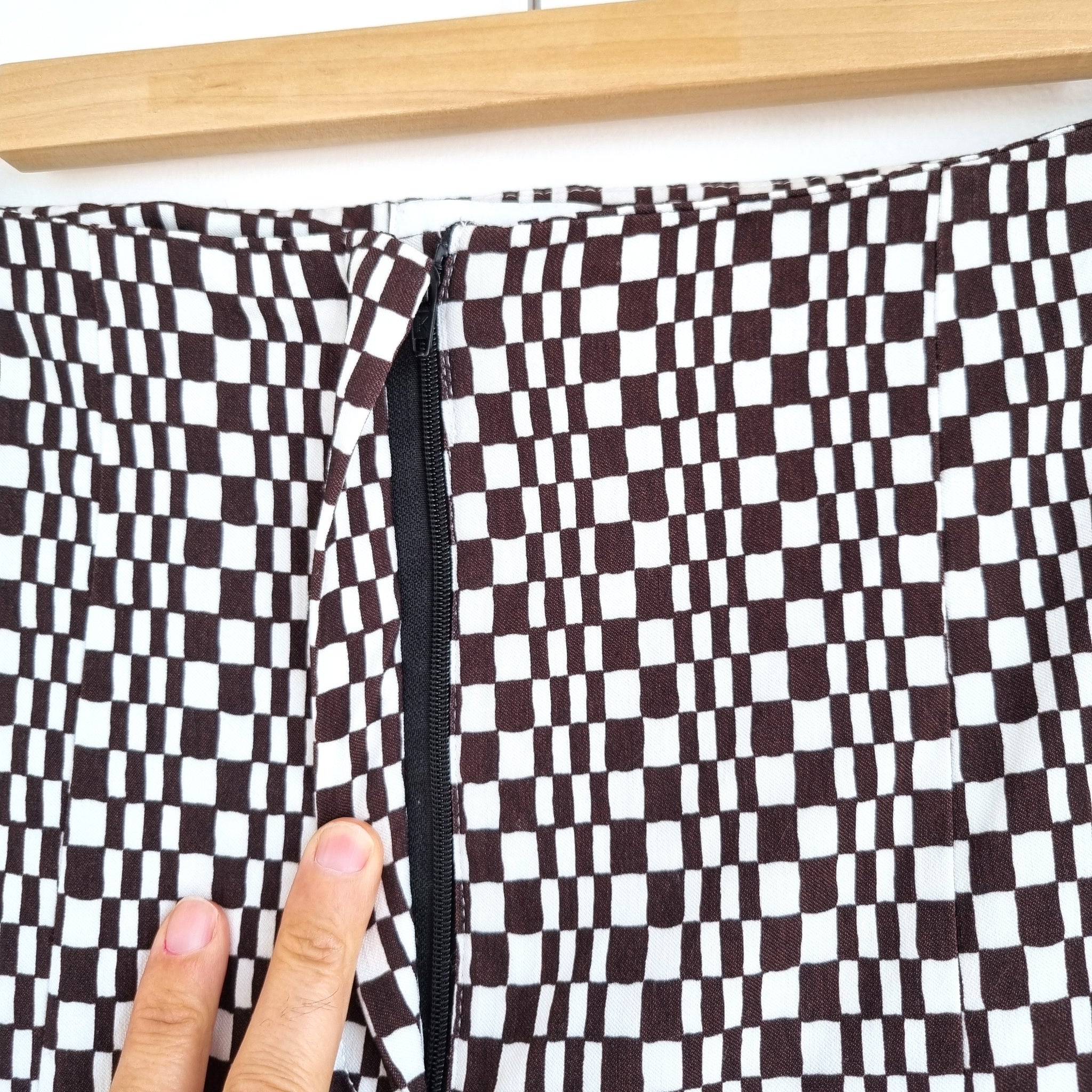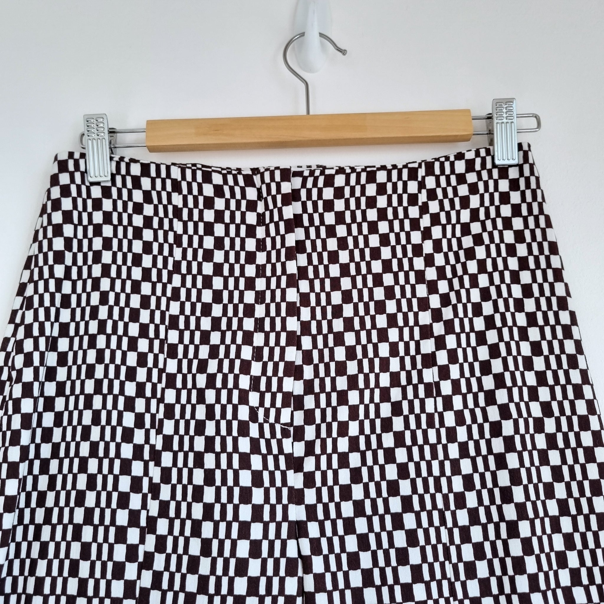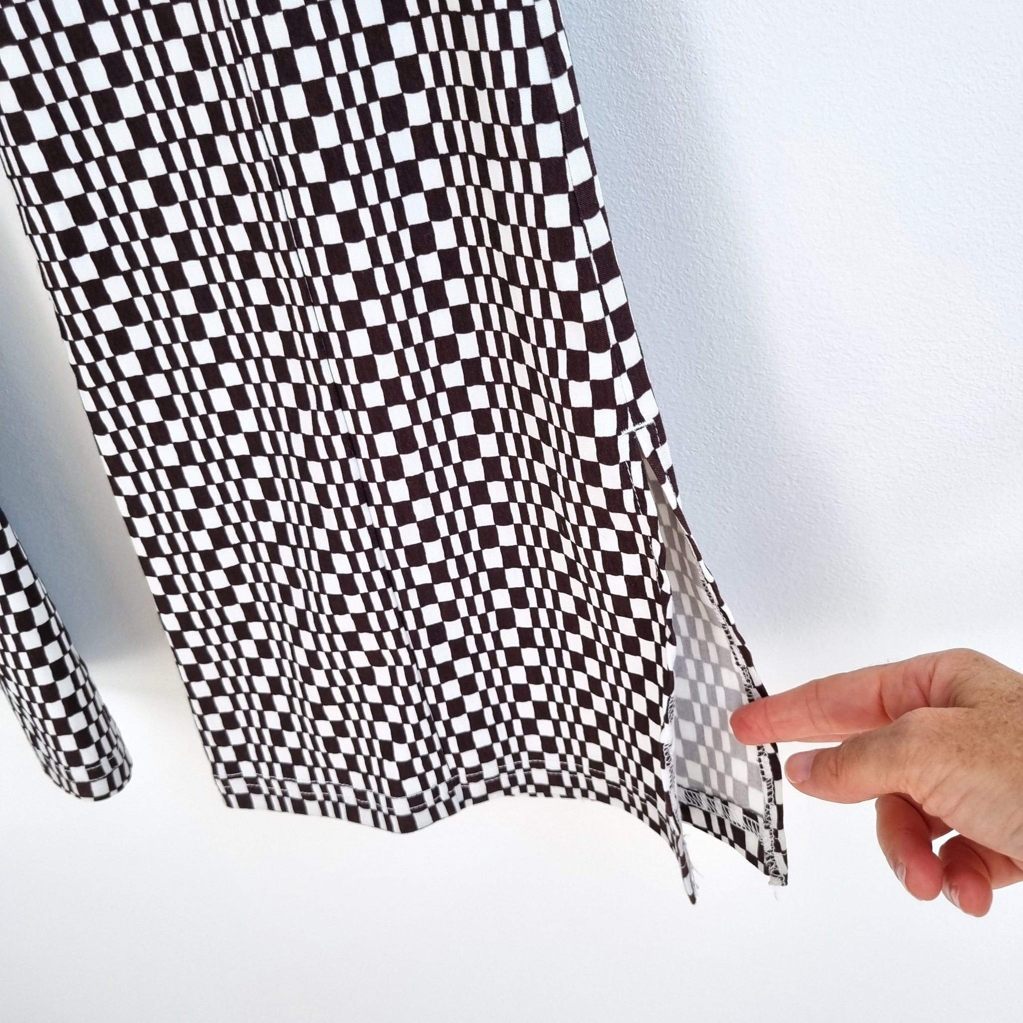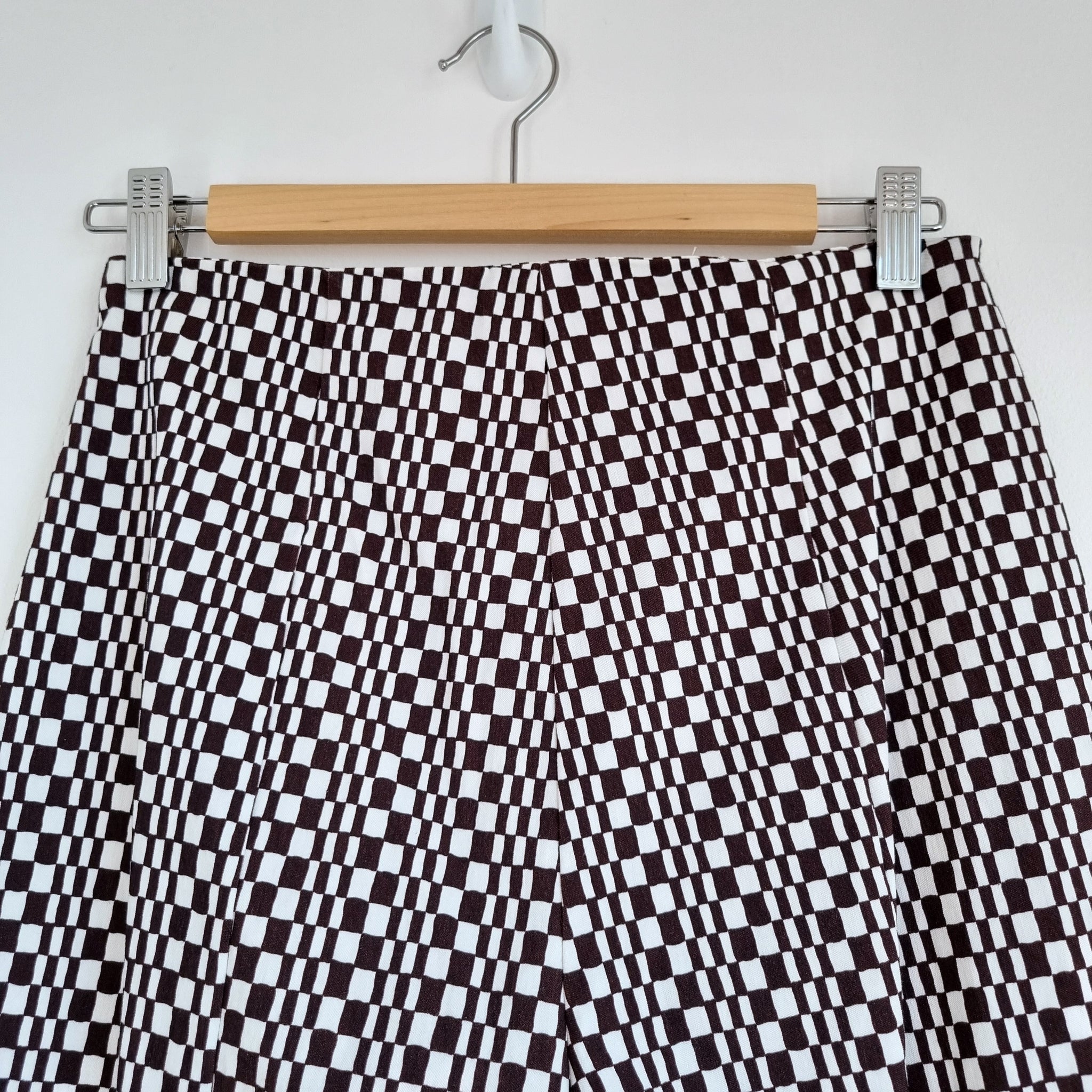 Topshop Trousers - Flared Bellbottoms - Check Pattern - Brown & White - Stretch - High Rise - Hem Slit