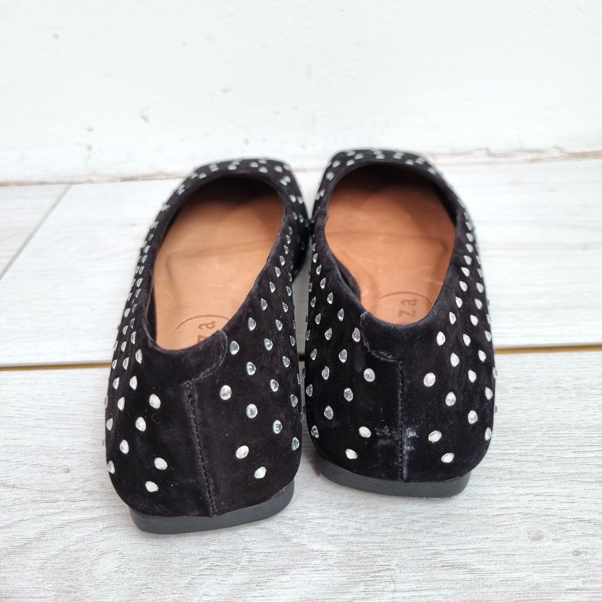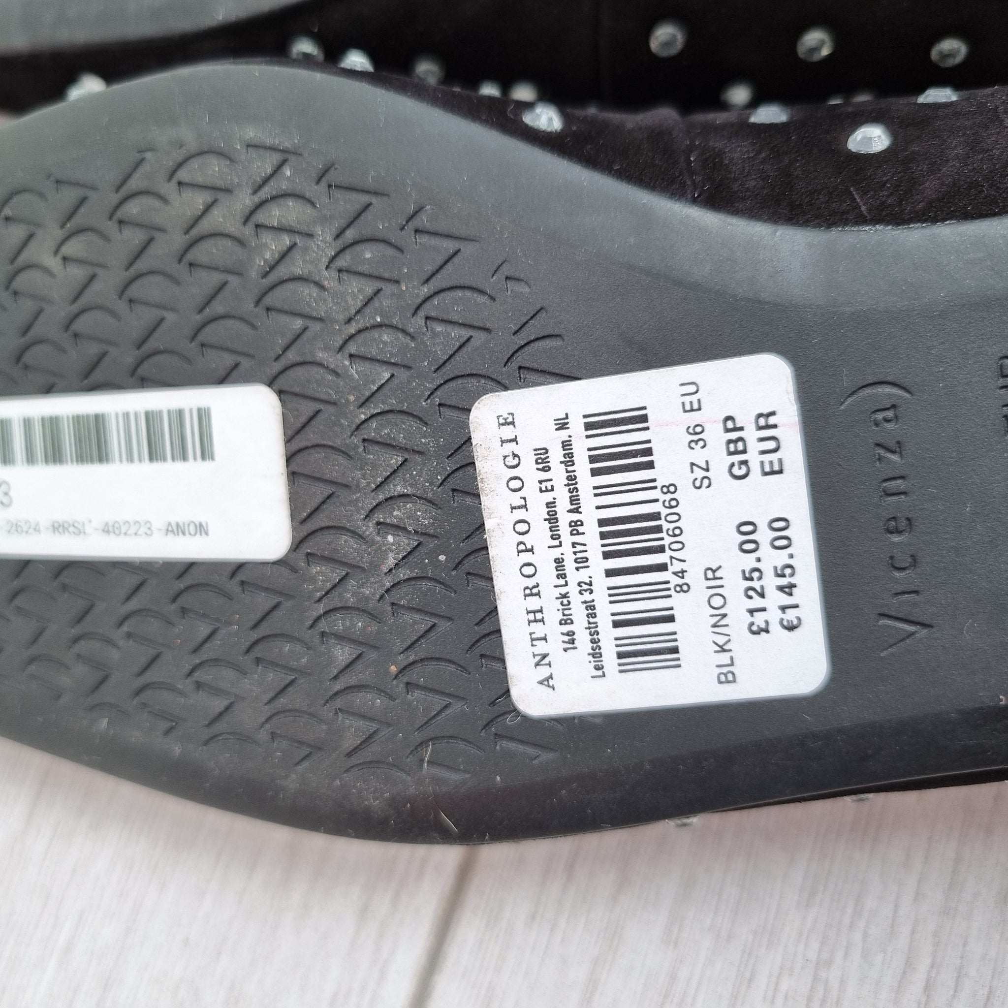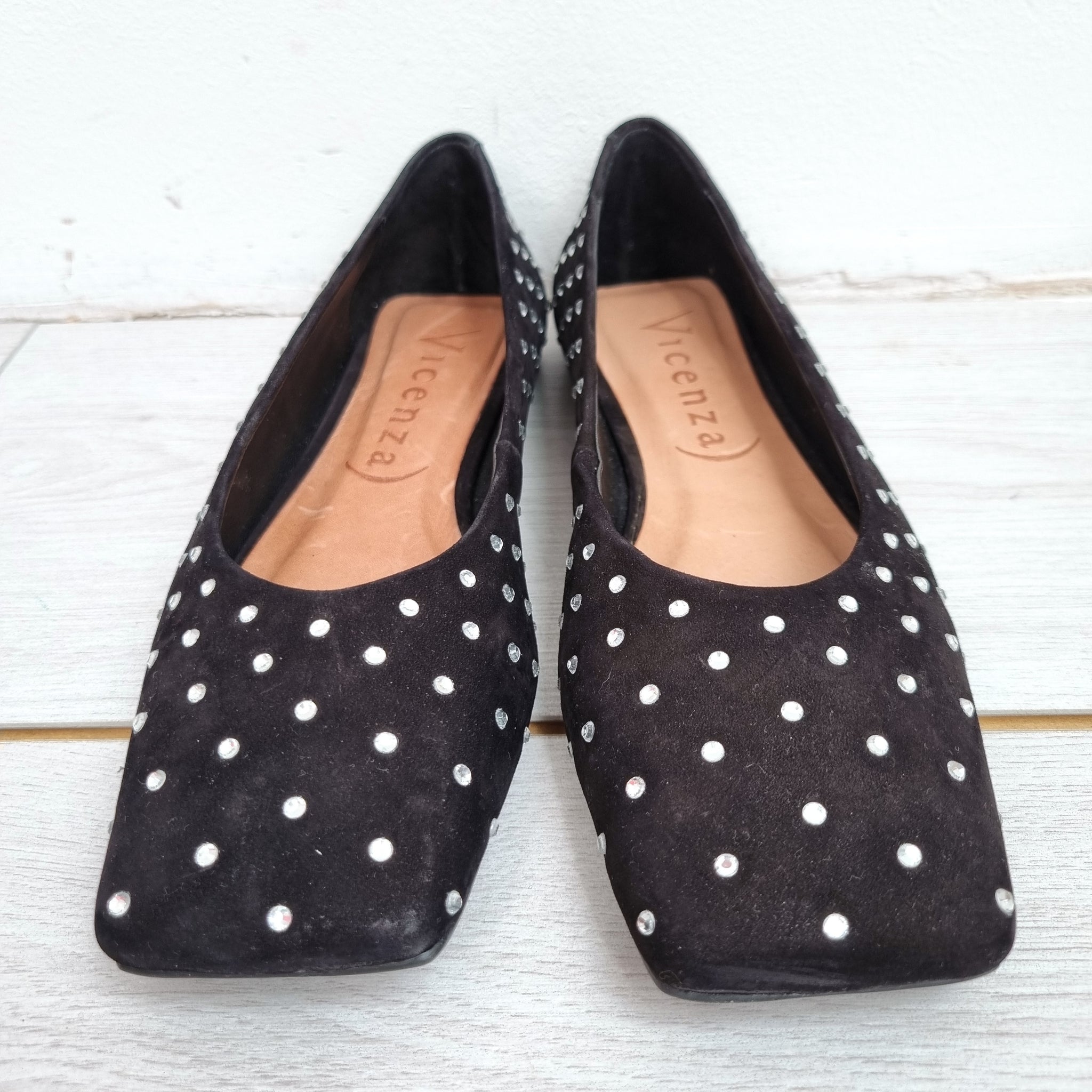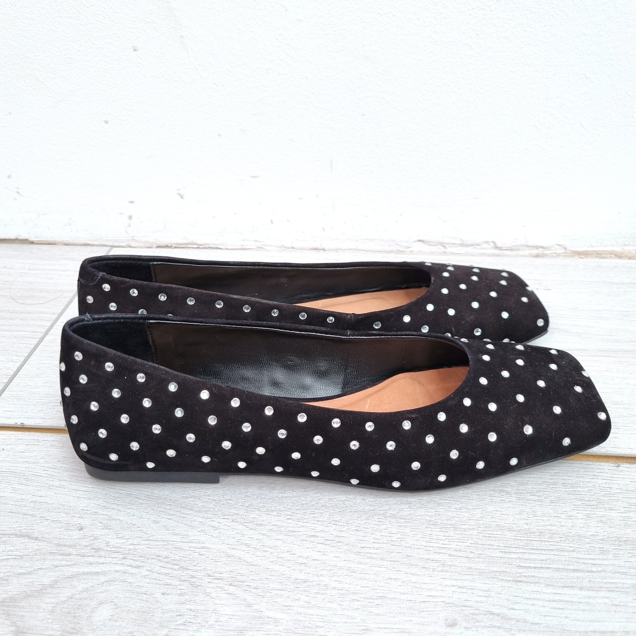 Vicenza Anthropologie Ballet Flats - Studded with Crystals - Black - Real Suede Leather - Square Toe - RRP £125